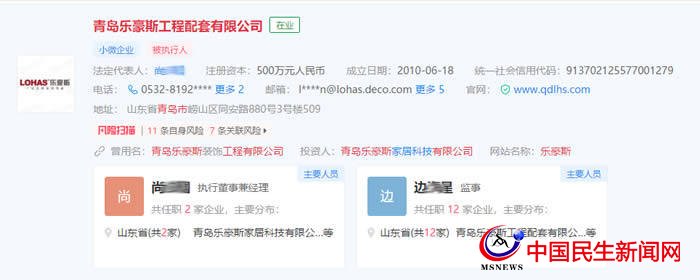 半島網(wǎng)查詢發(fā)現(xiàn),青島樂豪斯工程配套有限公司已被列為“被執(zhí)行人”曾用名“青島樂豪斯裝飾工程有限公司”