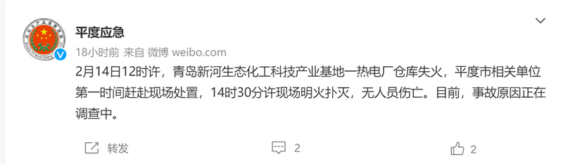 輿情 > 平度新河化工科技產(chǎn)業(yè)基地海灣熱電廠倉(cāng)庫(kù)失火 方圓三公里可見(jiàn)濃煙