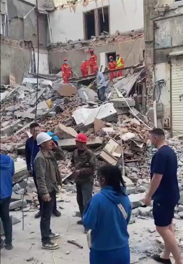 上午10時許,該商戶表示,事故現(xiàn)場已圍起了警戒線,有工作人員駐守。附近一餐館老板告訴記者,現(xiàn)場有大型工程車輛和消防救援人員?,F(xiàn)場視頻顯示,在一建筑物的廢墟中,有消防人員正在瓦礫中作業(yè),旁邊有大型工程車輛。