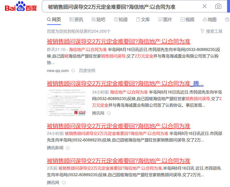 輿情 > 海信地產(chǎn)銷售顧問誤導(dǎo)客戶交2萬元定金難要回? 以合同為準(zhǔn)到底咋樣了?