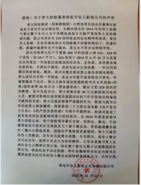 當(dāng)前位置:首頁(yè) > 娛樂(lè) > 輿情 > 澄清!關(guān)于青大控股蓄意侵犯青島宇宙人影視公司的聲明
