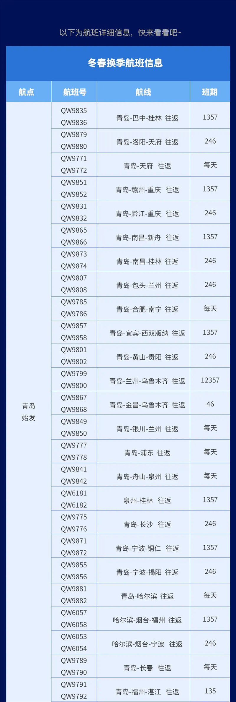 旅游航線方面,青島航空新增了青島=南昌=桂林、青島=巴中=桂林航線,恢復(fù)青島=合肥=南寧等冬春季熱門旅游目的地航線。